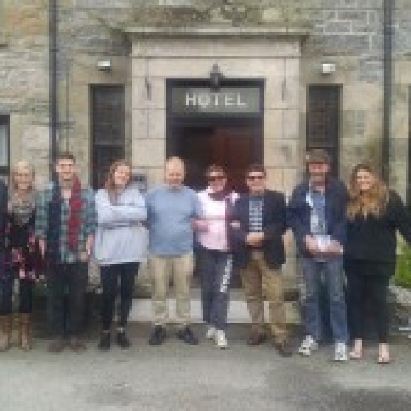 Hello Friends of Wings, it’s been too long since I last posted, but we have been a wee bit busy. I just toured northern Europe with the kids and company while Bruce held down the fort here at Wings. Bless his heart he did a great job, we were gone for four weeks, and by the end of the journey, I think I sort of crossed over from traveling as a holiday to traveling as a life style. It’s easy to do. We were in the highlands for only a few days to a week but could have stayed on much longer. We were fortunate to stay at the Richmond Arms Hotel in Tomentoul, and our lovely hosts, Martin and family, made it delightful to be there. I have attached a photo of best photo bomb ever, myself at the Highland gathering, and our gang saying farewell to Martin at the Richmond Arms Hotel.